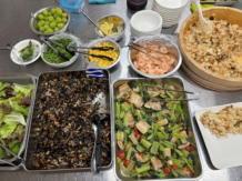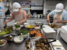 お盆休みも近く、暑さ厳しい中を今回もボランティアの皆さんが集まってくれました。 子どもたちは夏休みも元気で、姉弟で仲良く、早くから訪れる子、 大人サイズのご飯が食べたいという食欲旺盛なお子さん、蒸し鶏のサラダが気に入って、初めて食べるモッツァレラチーズの食感に喜ぶ子どももいました。 西東京市産スイカは、真っ赤に美味しく熟れ、訪れた親子の喉を潤してくれました。
