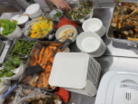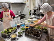 中学生の女の子が小さな手で料理を秤にのせ、慎重に計測。トングを器用に使って、彩りよく美しく盛り付けてくれました。